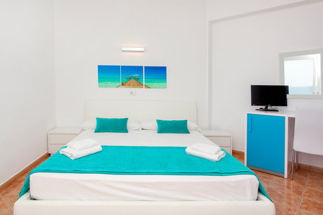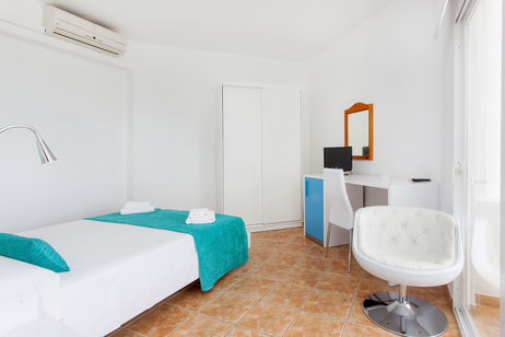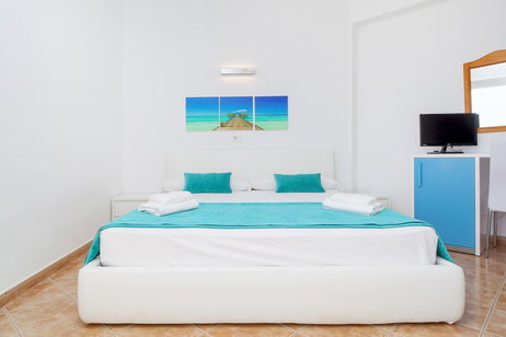Triple 25 m2 rooms with sea/pool views, These have a sun terrace. The room has 3 single beds + extra bed, a fully equipped bathroom with shower and hair dryer, air conditioning, new generation SAT TV and cleaning and towel service. Wi-Fi.